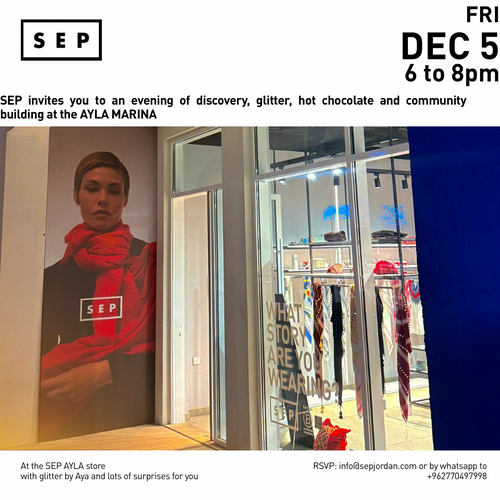 At the SEP Boutique, discover 3 female entrepreneurs and their stories, meet like-minded people and shop. RSVP to alshammary@sepjordan.com
